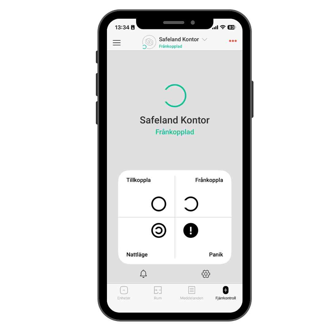 Det vanligaste sättet att styra systemet är genom appen. I appen kan du som äger larmet styra alla funktioner i ditt larmsystem, oavsett var du befinner dig.
