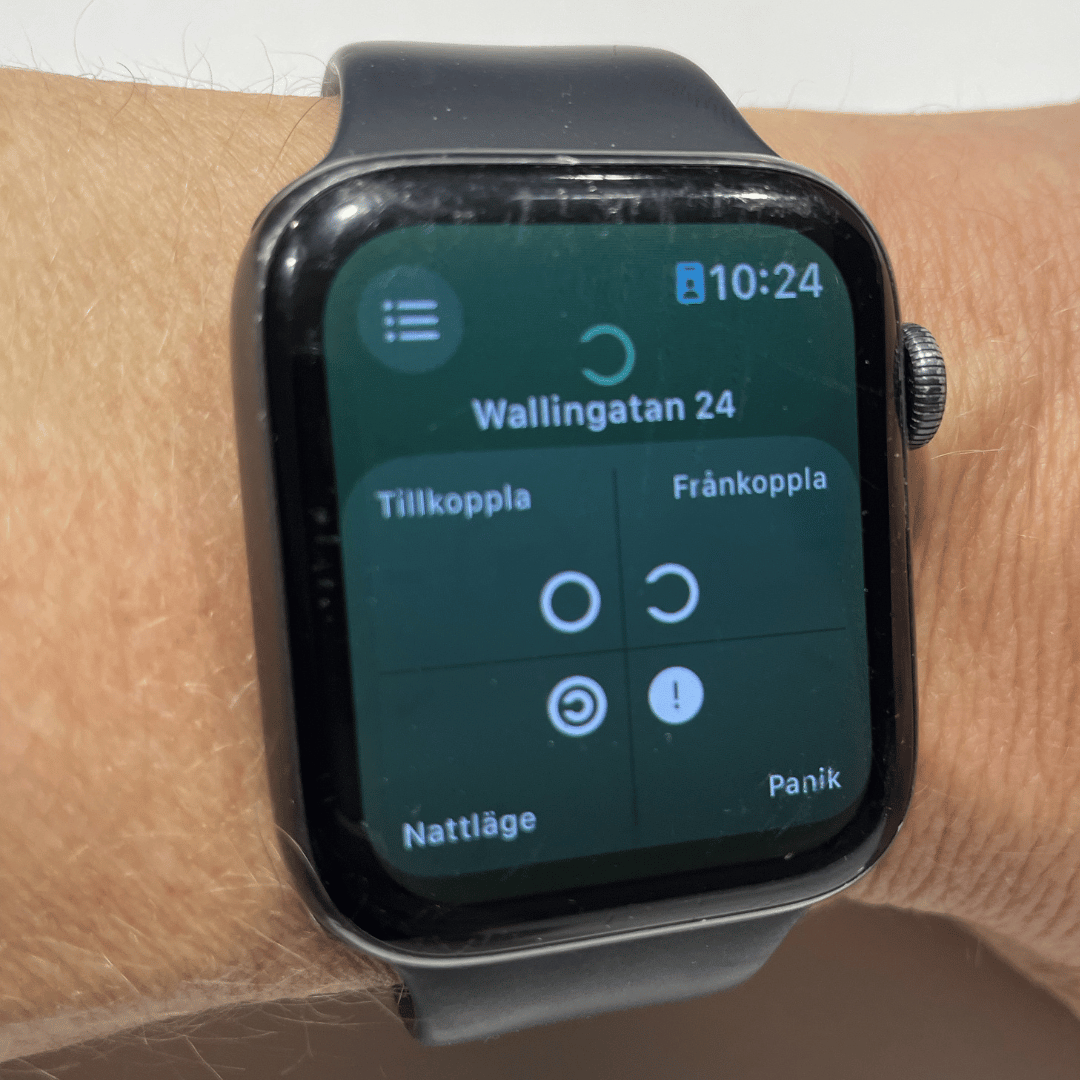 Smartklockan är en förlängning på Ajax-appen som även kan styras med din smartwatch, exampelvis AppleSmartwatch. Fördelarna är att du inte behöver ha mobilen tillgänglig och att du snabbt för kontroll på händelser i systemet.