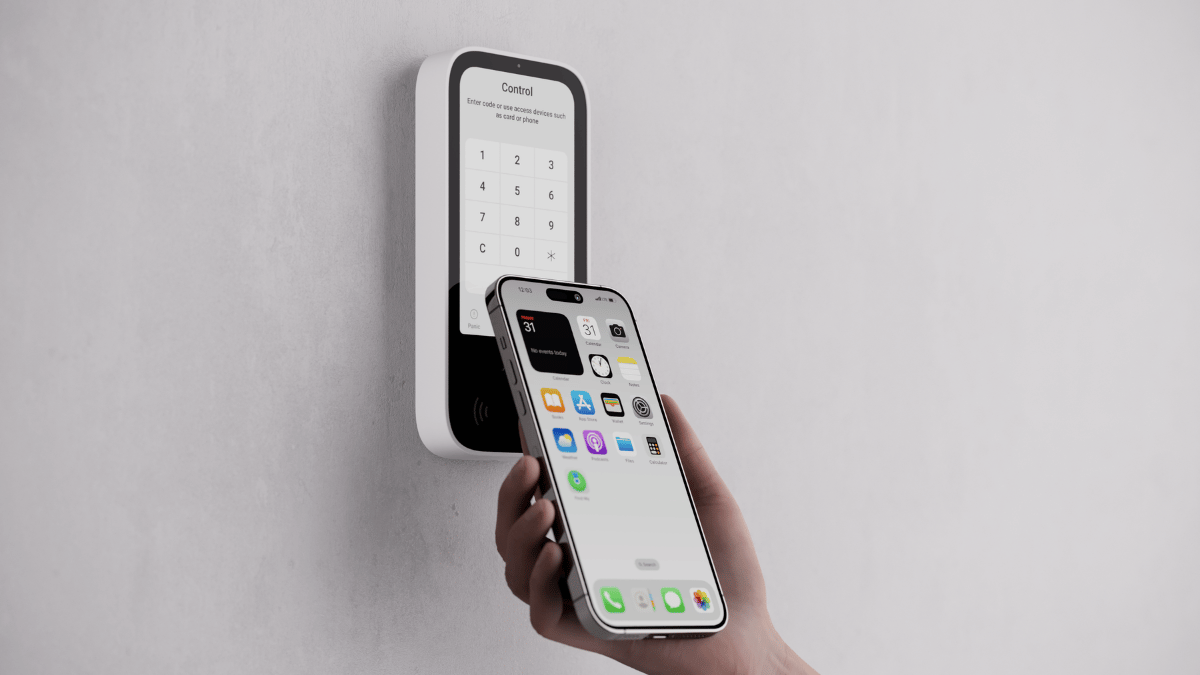 Ett smidigt sätt att avlarma eftersom du oftast har telefonen med dig. Håll telefonen mot KeyPad Touch eller Outdoor. Tekniken heter BLE, Bluetooth Low Energy, vilket stöds av de flesta moderna telefoner.